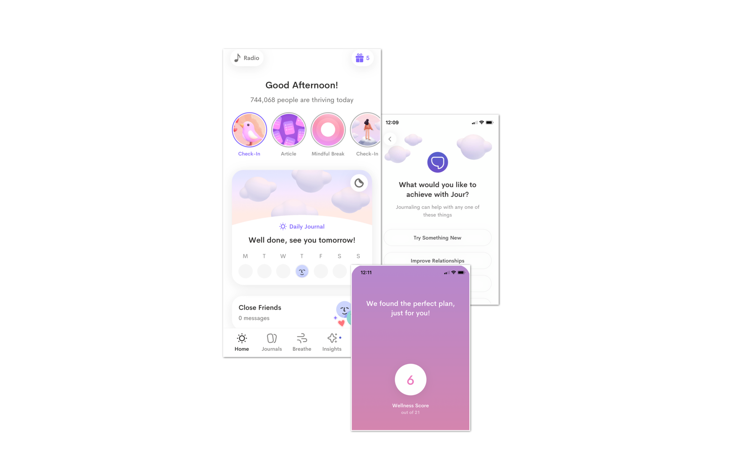 Jour combines tailored, guided journalling with mindfulness features to create a “therapeutic journal to change your life”.