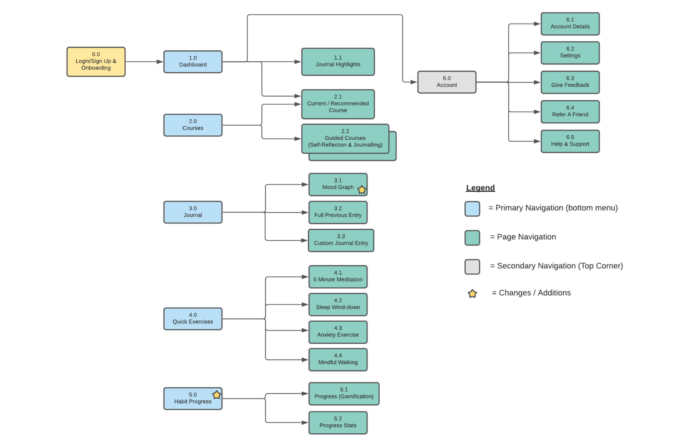 With the learnings from card sorting, I was able to refine the sitemap to the below.